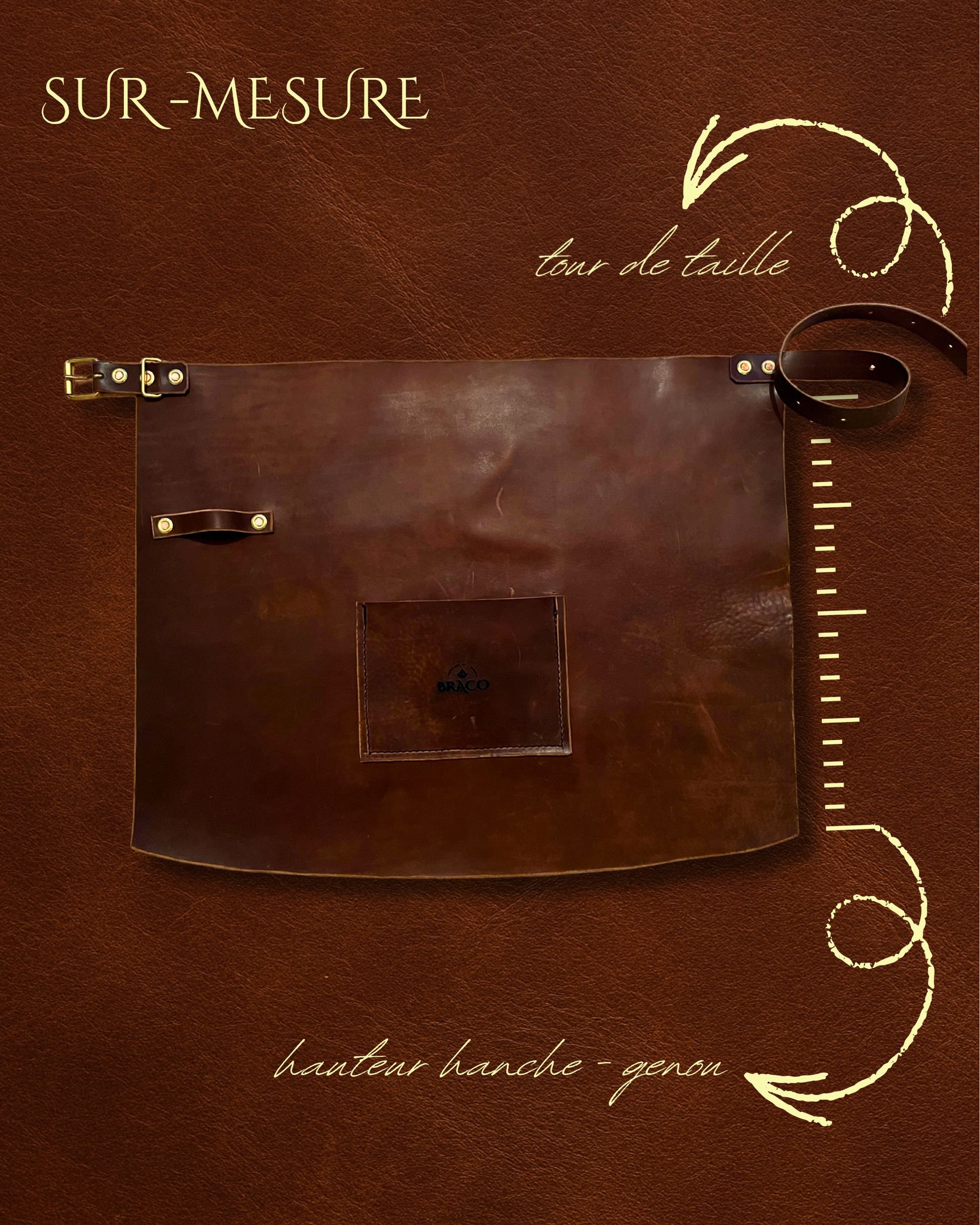 Parce que chaque chef, restaurateur, artisan ou passionné a une morphologie et une manière de travailler différentes, chaque tablier cuir Braco est réalisé sur mesure.